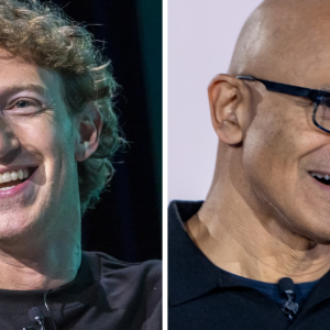 META CEO Mark Zuckerberg (L) and Microsoft CEO Satya Nadella. Shares of Meta soared 12% and Microsoft popped 5% on Thursday, after the companies reported better-than-expected earnings that beat on…